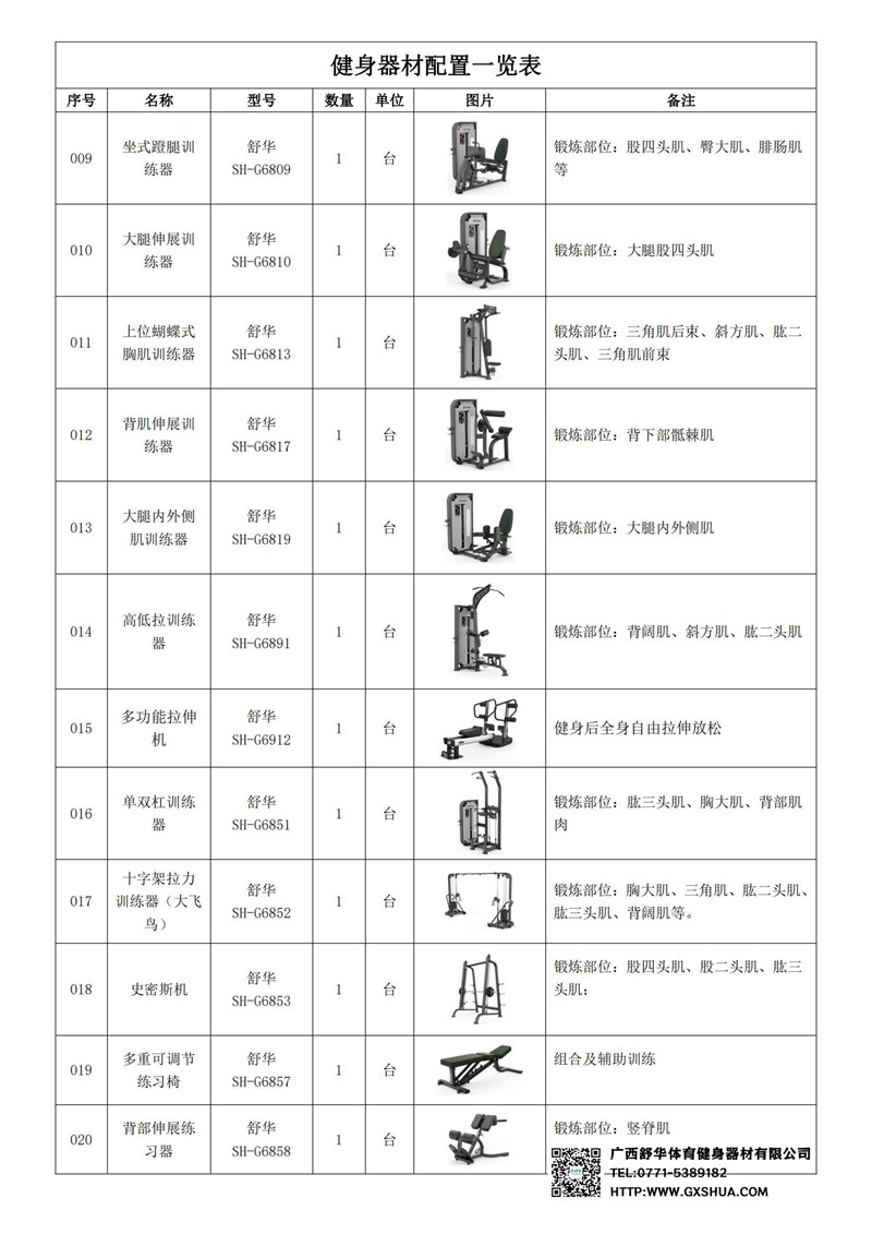 15.好博多功能拉伸机SH-G6912*2台-多功能拉伸器专为健身人士量身打造的专业拉伸器械,可帮助用户进行更高强度训练前后充分拉伸身体,取得更加满意的锻炼效果,同时还有助于预防在运动过程中及结束后受伤风险。多功能拉伸器精心设计的多方位,人性化辅助把手,能够多角度的刺激目标肌群,让运动更有效,根据亚洲人身体比例,更符合人体工学原理,让运动轨迹更科学。