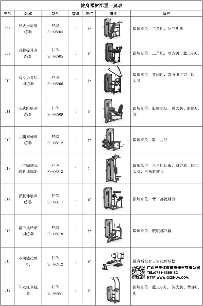 14.好博背肌伸展训练器SH-G6817*1台-主要针对背部肌肉群进行锻炼,能够有效增强背部肌肉的力量和耐力,塑造完美的背部线条,对于改善体态、预防和缓解背部疼痛等问题也有一定的帮助。配备了多档位的调节功能,可以根据使用者的身高、臂长以及不同的训练阶段和训练目标,灵活调整训练的角度和阻力,满足个性化的训练需求。