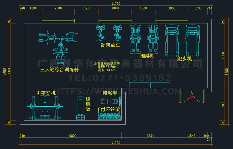 史密斯机1台)多重可调节练习椅1台)、腹肌板(1台)、6付哑铃套组(1套)、哑铃凳(1台)、可以实现对不同肌肉群的针对性训练,满足肌肉训练需求,全方位激活身体机能。