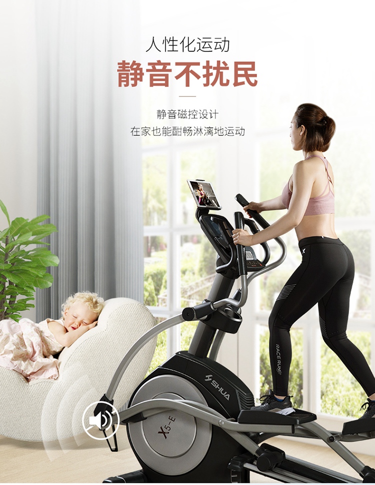 椭圆机是一种主动运动方式,能预防、降低、缓解颈椎病、肩周炎等疼痛。而且,在使用室内健身器材-椭圆机时,因为膝盖不是着力点,所以对膝关节的冲击力也很小,很大程度降低了给膝盖造成损伤的可能性,安全性大大提升,更为重要的是,室内健身器材-椭圆机运动强度不大,适合体重过重的肥胖人群使用。它既适用于大众人群进行锻炼,更适合不同人群,还适合康复训练、产后人群恢复训练等。
