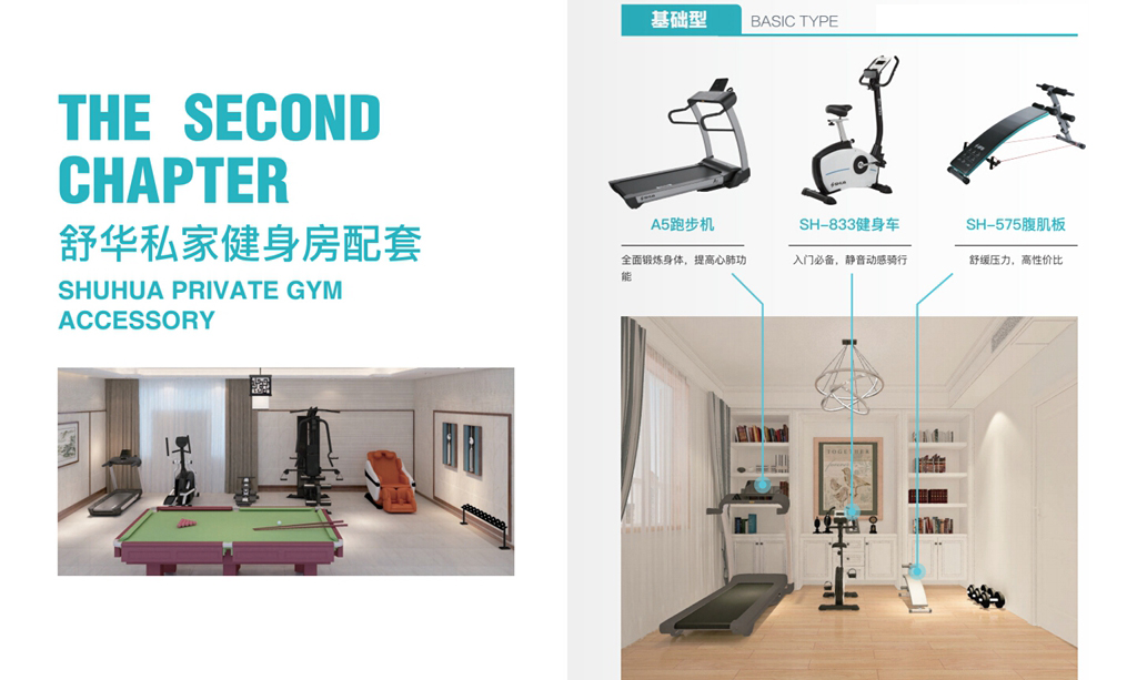 1、基础型:A5跑步机+SH-833健身车+SH-575腹肌板