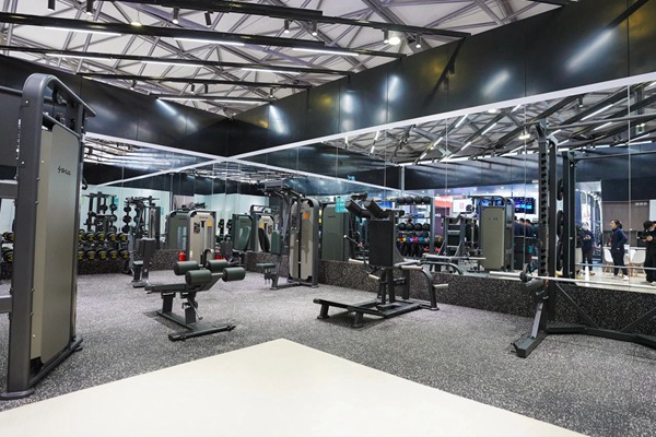 此次好博体育参展的最大亮点在于其别出心裁的展位设计。不同于传统的器材展示,好博此次以“好博健身”门店空间布局的概念来展现,将展位分为前台、洽谈区、体测区、团课区、私教区、有氧区以及综合训练区等多个区域。这种布局方式旨在为参展观众提供全方位、沉浸式的体验,使其能够更深入地了解“好博健身”的核心理念和服务。