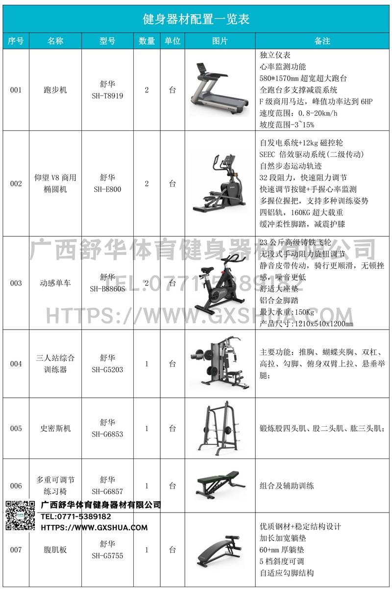 1.好博V9跑步机SH-T8919*2台-独立仪表-简洁大气,全新外观设计,健康运动新选择;心率监测功能,可通过手握心率、无线心率带等不同方式实时采集心率数据;580*1570mm超宽超大跑台-跑感舒适,跑台整体安全稳定;全跑台多支撑减震平台,保证跑台超强支撑力,达到180kg支撑,满足健身房需求。